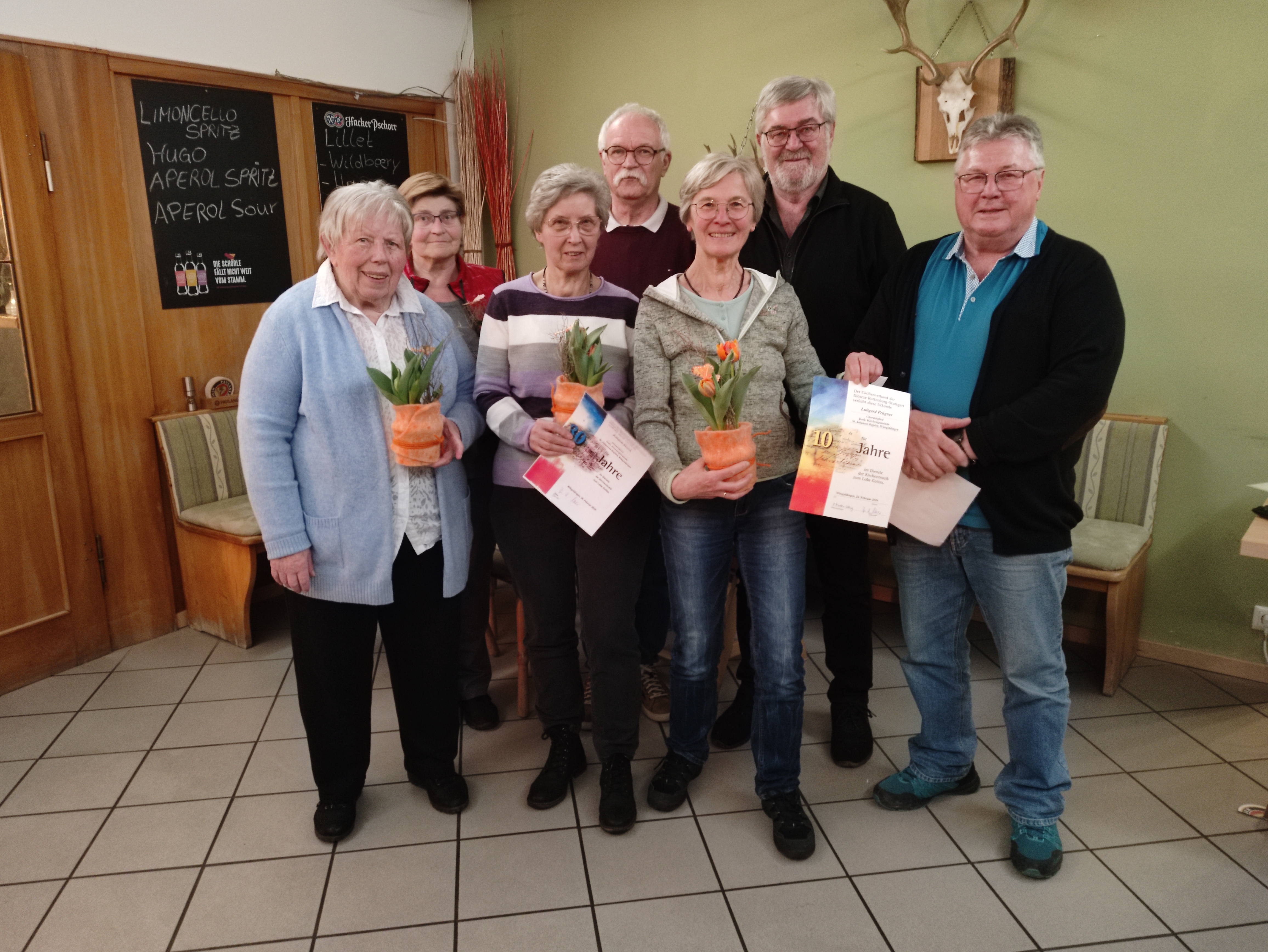Für eifrigen Probenbesuch wurden wieder etliche Mitglieder ausgezeichnet: Erwin Heilig, Hildegard Stutz, Juliane Stock, Elisabeth Maile, Luitgard Prügner, Hildegard Heilig und Karl Schwarzkopf. Mit der Vorschau auf das Jahresprogramm 2026 endete der offizielle Teil.