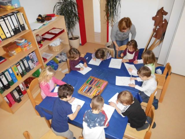 Unser Tagesablauf ist geprägt von einer intensiven Freispielphase, in der die Kinder den Spielort, die Art und Dauer des Spiels und die Spielpartner frei wählen können. Den Kindern steht die Werkbank, der Kreativraum, die beiden Höfe und der Bewegungsraum zur Nutzung zur Verfügung - Erstes Vesper: