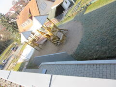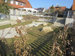 In unseren beiden Innenhöfen fahren die Kinder mit verschiedenen Fahrzeugen, spielen mit Pferdeleinen, können sich verstecken oder den Bodenbelag mit Kreiden bemalen.