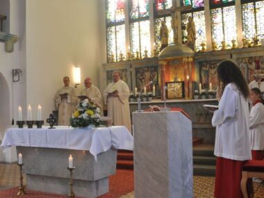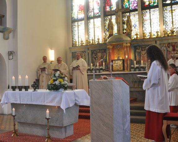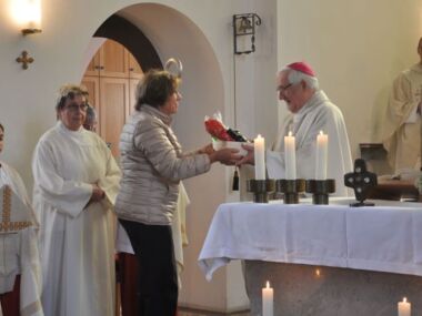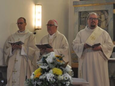 Nach dem Gottesdienst fand im Gemeindesaal unter dem Kindergarten ein Stehempfang statt, bei dem zahlreiche Mitglieder der Kirchengemeinde Gelegenheit hatten, mit dem Bischof ins Gespräch zu kommen. So konnte das hundertjährige Weihejubiläum der Pfarrkirche wenn auch mit zweijähriger Verspätung würdig gefeiert werden. Der Gottesdienst wird vielen in schöner Erinnerung bleiben.