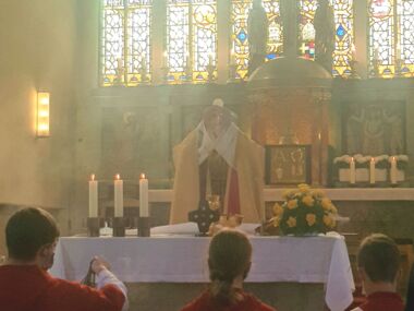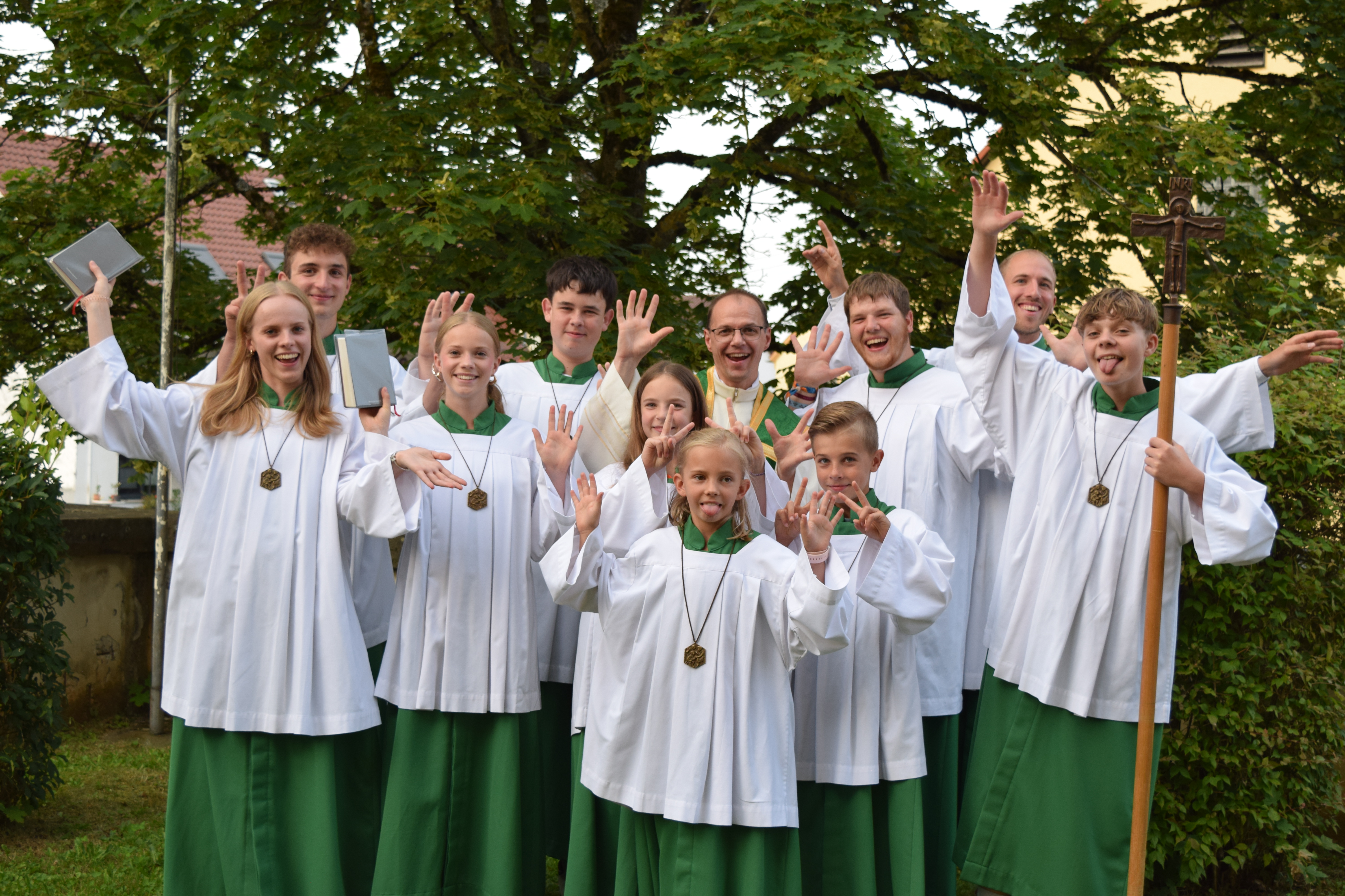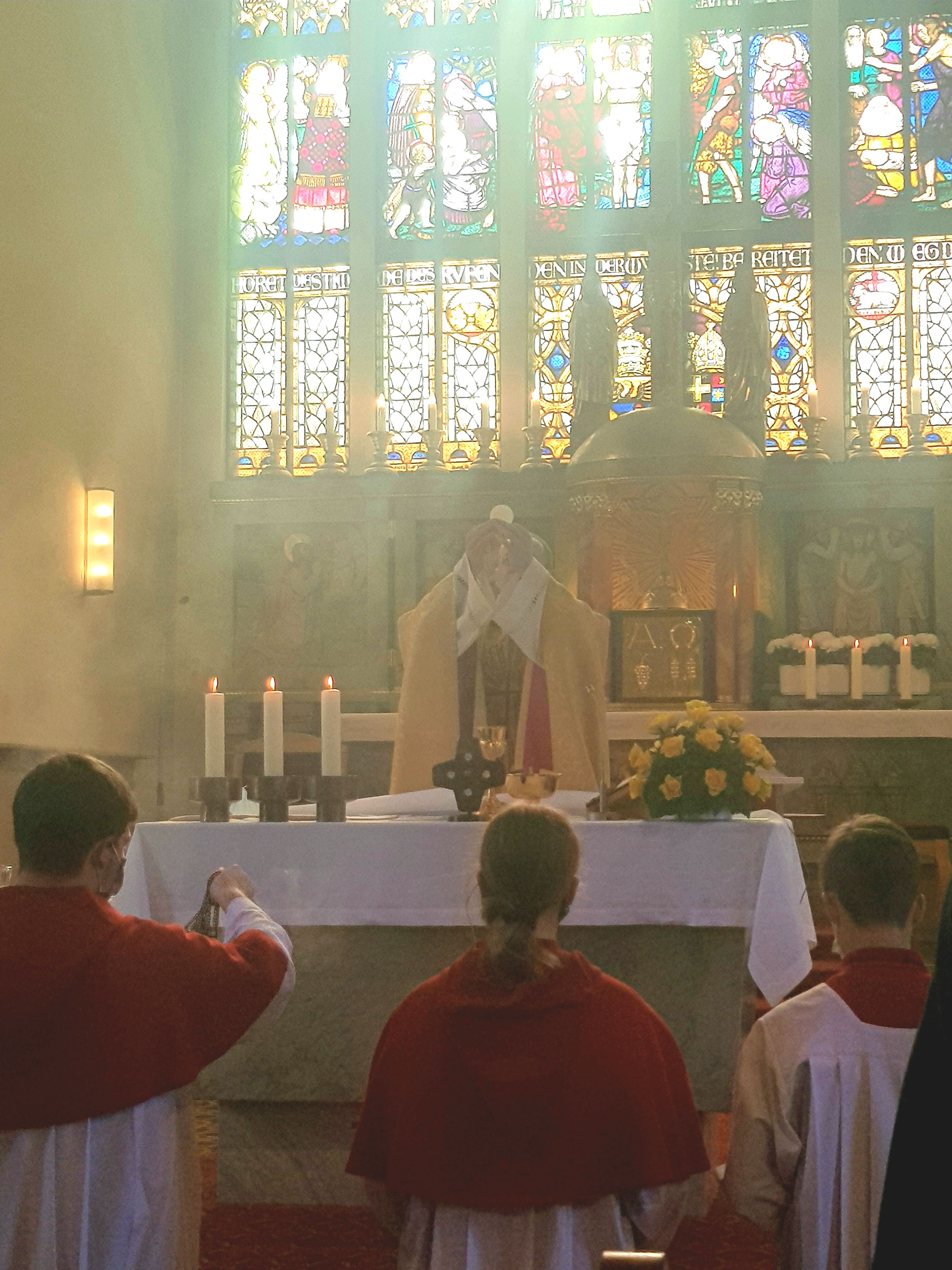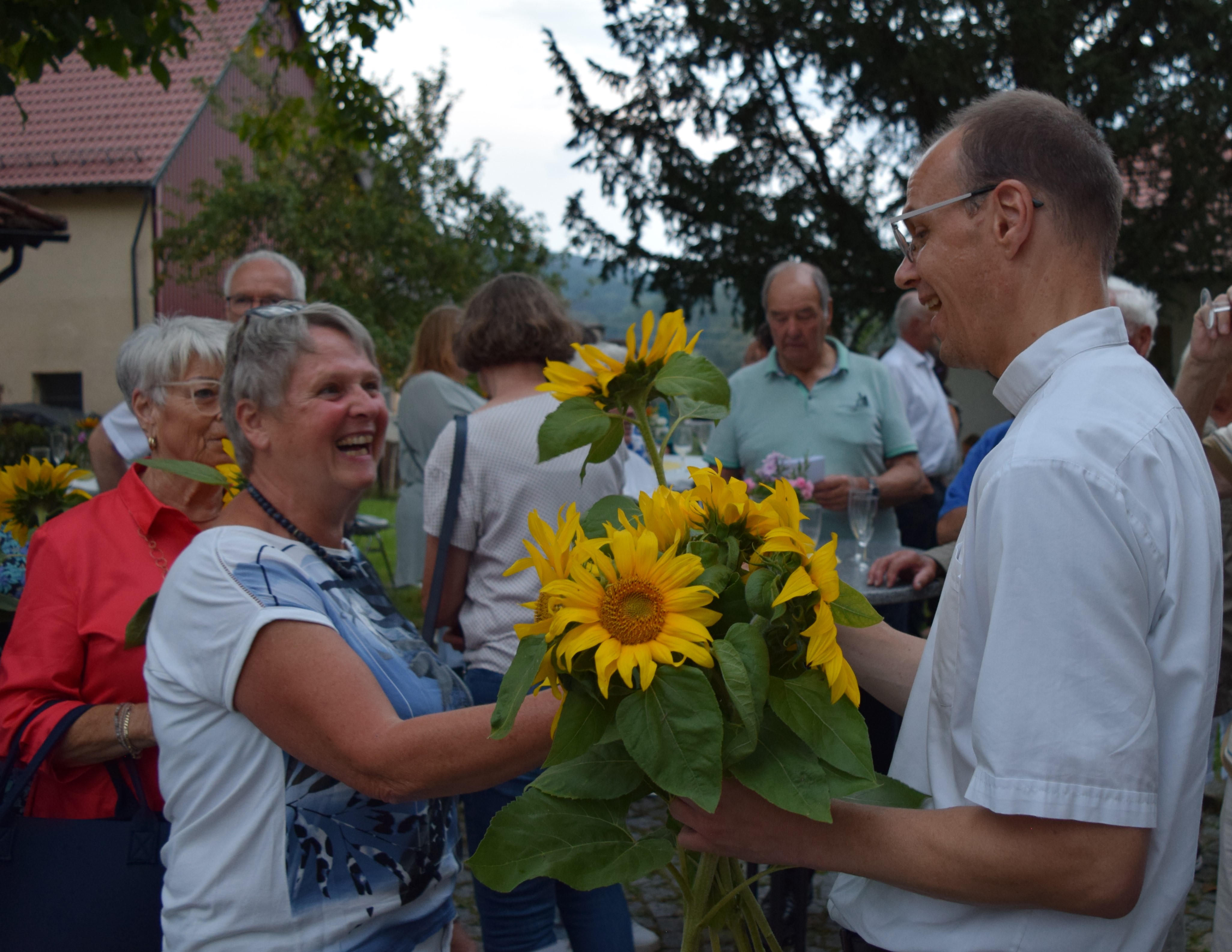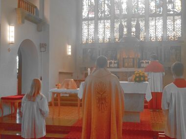 Leider konnte auf Grund der jetzigen Situation das Pontifikalamt mit Bischof Dr. Gebhard Fürst nicht wie vorgesehen stattfinden. Bischof Fürst hat jedoch seinen Besuch für das kommende Jahr zugesagt. Trotzdem fand ein festlicher Gottesdienst statt, den Pfarrer Braun zelebrierte. Die Messe wurde von einer Schola des kath. Kirchenchors, Stefan Feifel an der Orgel sowie Cornelia Schultes musikalisch umrahmt. In einer kurzen Ansprache überbrachte Herr Bürgermeister Rembold die Glückwünsche der Gemeinde sowie der Ortsvorsteherin Frau Schneider.