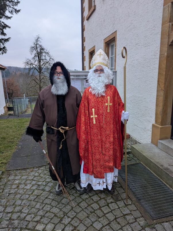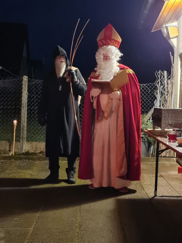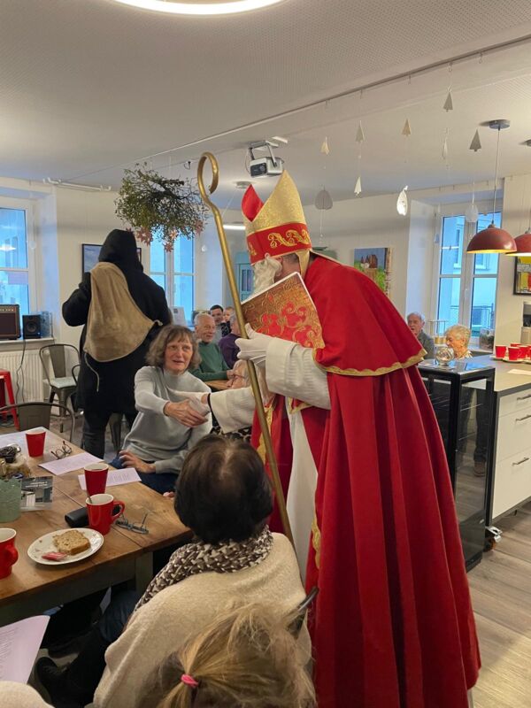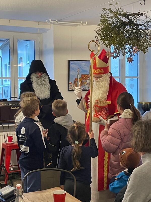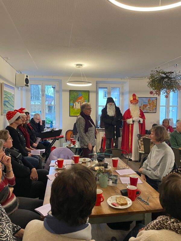 Am Nikolaustag luden das Team vom Kukaff und der Kirchengemeinderat zum Adventssingen ins "Kultur-Kaffee" im Bezirksamt ein. Mit Unterstützung der Band Mutabor wurden deutsche und englische Weihnachts- und Adventslieder gesungen. Bei den großen und besonders bei den kleinen Leuten war die Freude groß, als der Nikolaus in Begleitung seines Knechts Ruprecht zu Besuch kam. Sofort stimmten alle ins Begrüßungslied "Lasst uns froh und munter sein" ein. Er begrüßte alle Anwesenden per Handschlag und erzählte aus seinem Leben für die Armen. Danach wurden Schoko-Nikoläuse und Mandarinen als Geschenk verteilt. Das Team vom Kukaff sorgte für Glühwein und Punsch, während das Team des KGR knackige Würstchen im Hof bruzzelte. Drinnen gab es auch noch leckeren Kuchen und Muffins. Der Erlös des Würstchen- und Kuchenverkaufs geht zu Gunsten der Orgelsanierung.